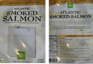 The affected product is sold under the label The Fresh Market Signature Collection and are packed in 4 ounce retailer packaging. The recalled smoked salmon has a lot code of 1459/2.
